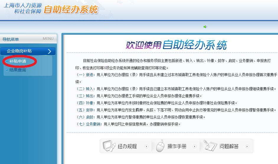Step 2. 登录“上海市人力资源和社会保险自助经办系统”,申请稳岗补贴